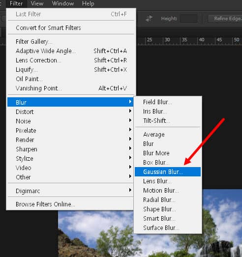 3) Go to the Filter menu at the top and select Blur > Gaussian Blur.
