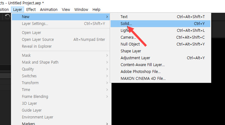 1) To create a solid layer, select Solid from the Layer menu (New > Solid)