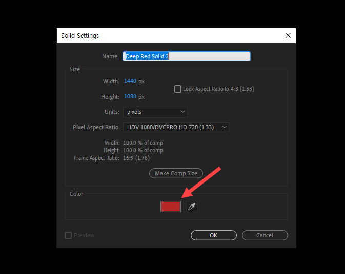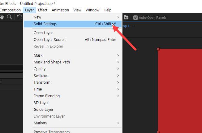 4) To reset the color of a solid layer, select the layer and go to solid settings from the layer menu