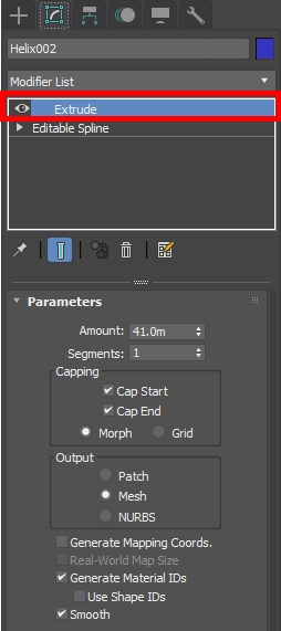 6)Convert the helix object to a spline object and add an extrude modifier.