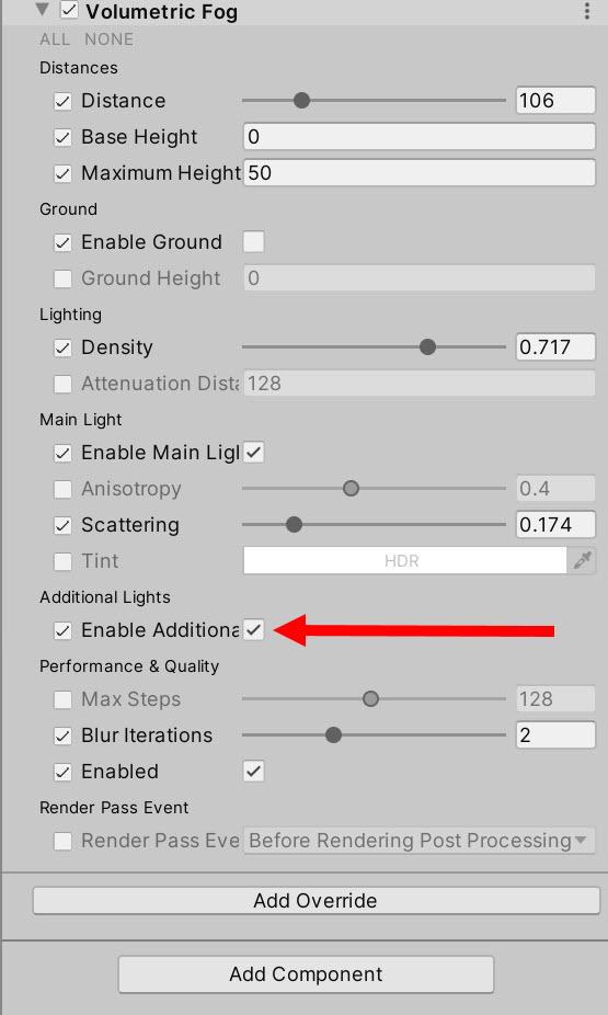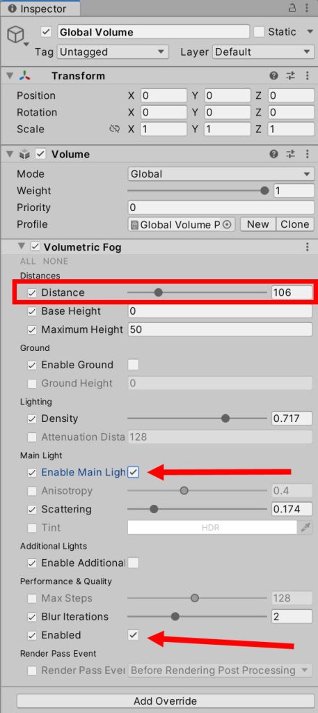 6) Check the Enabled property at the bottom of Volumetric Fog.